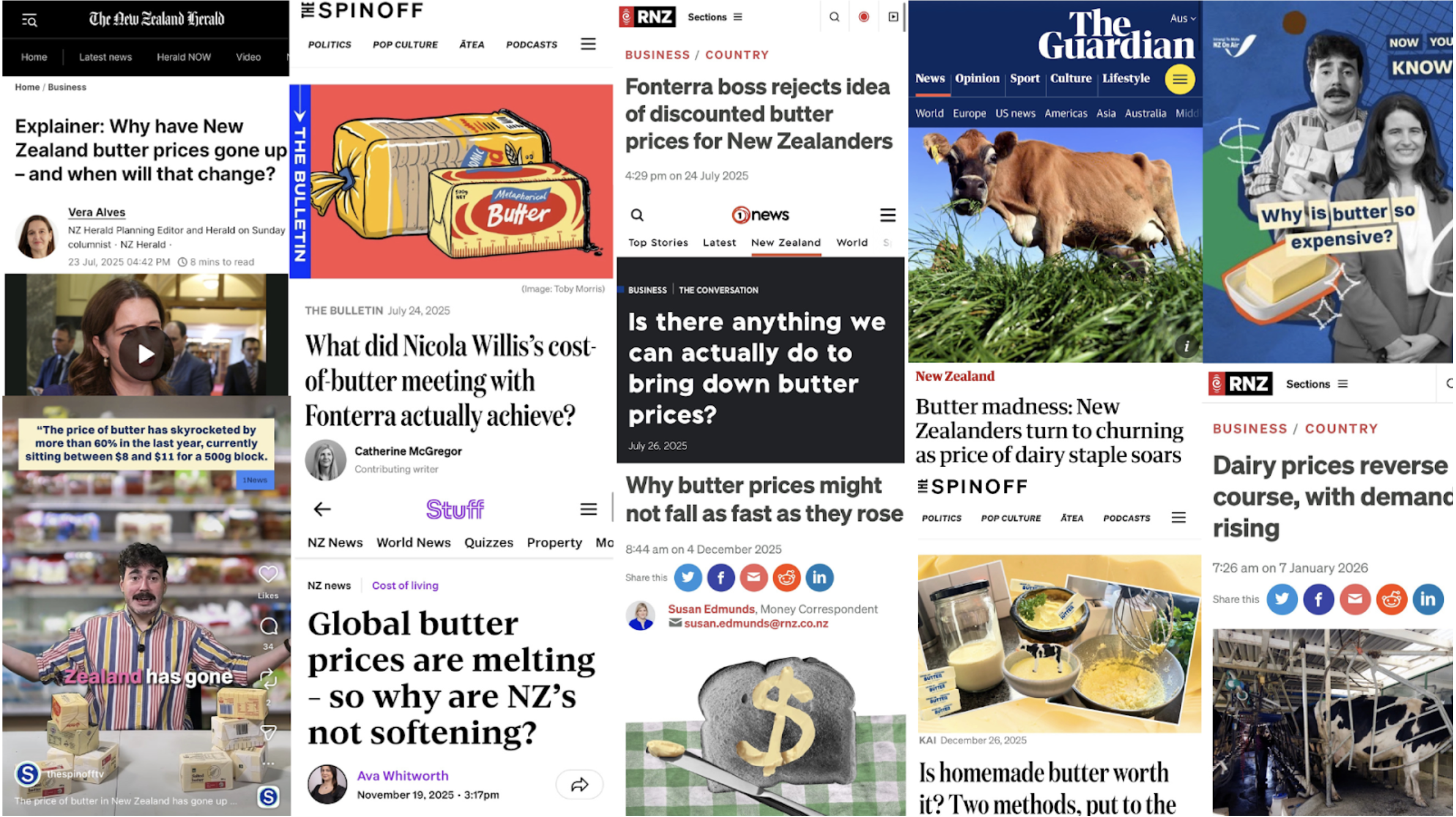 A non-exhaustive collection of news articles about butter in New Zealand from the last 7 months.